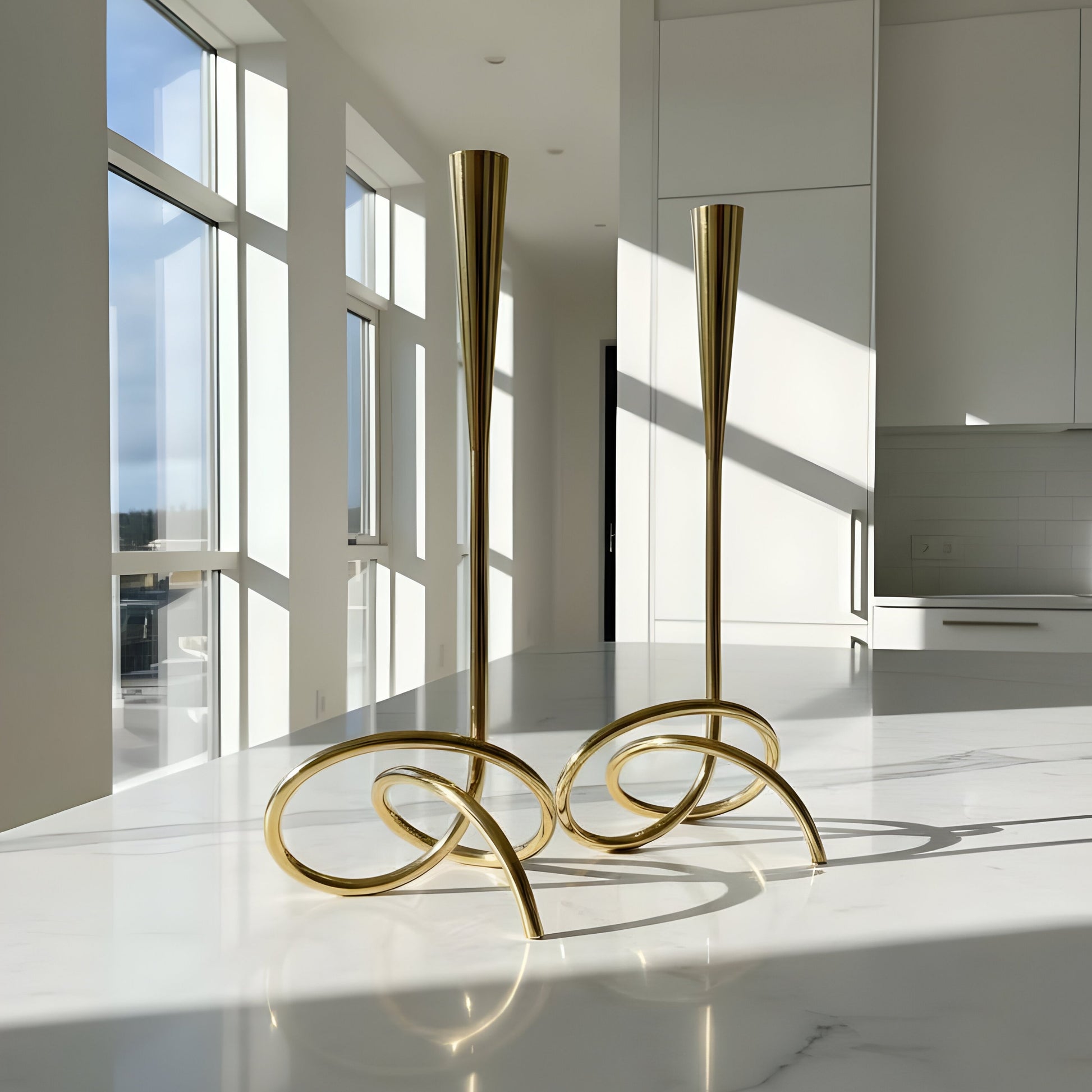 • Ett konstverk i solid guldfinish – skulpturala ljusstakar skapade för att dra blickarna till sig. Tillsammans 1,47 kilo av ren elegans och designkänsla.