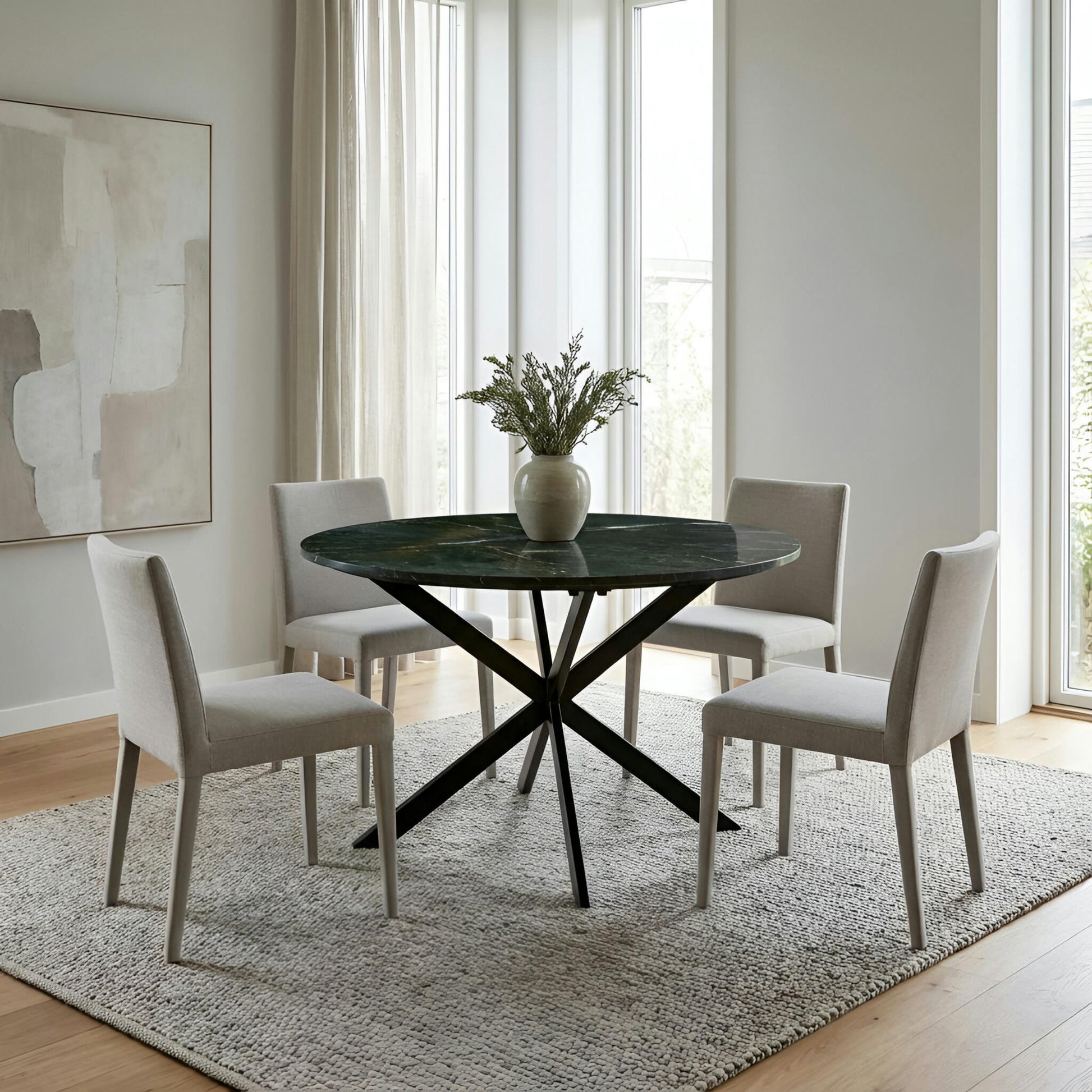 • Unikt matbord där varje marmorskiva är unik och bidrar till ett harmoniskt, exklusivt uttryck. Den polerade ytan reflekterar ljuset mjukt och ger rummet en känsla av lugn, tyngd och genomtänkt design.