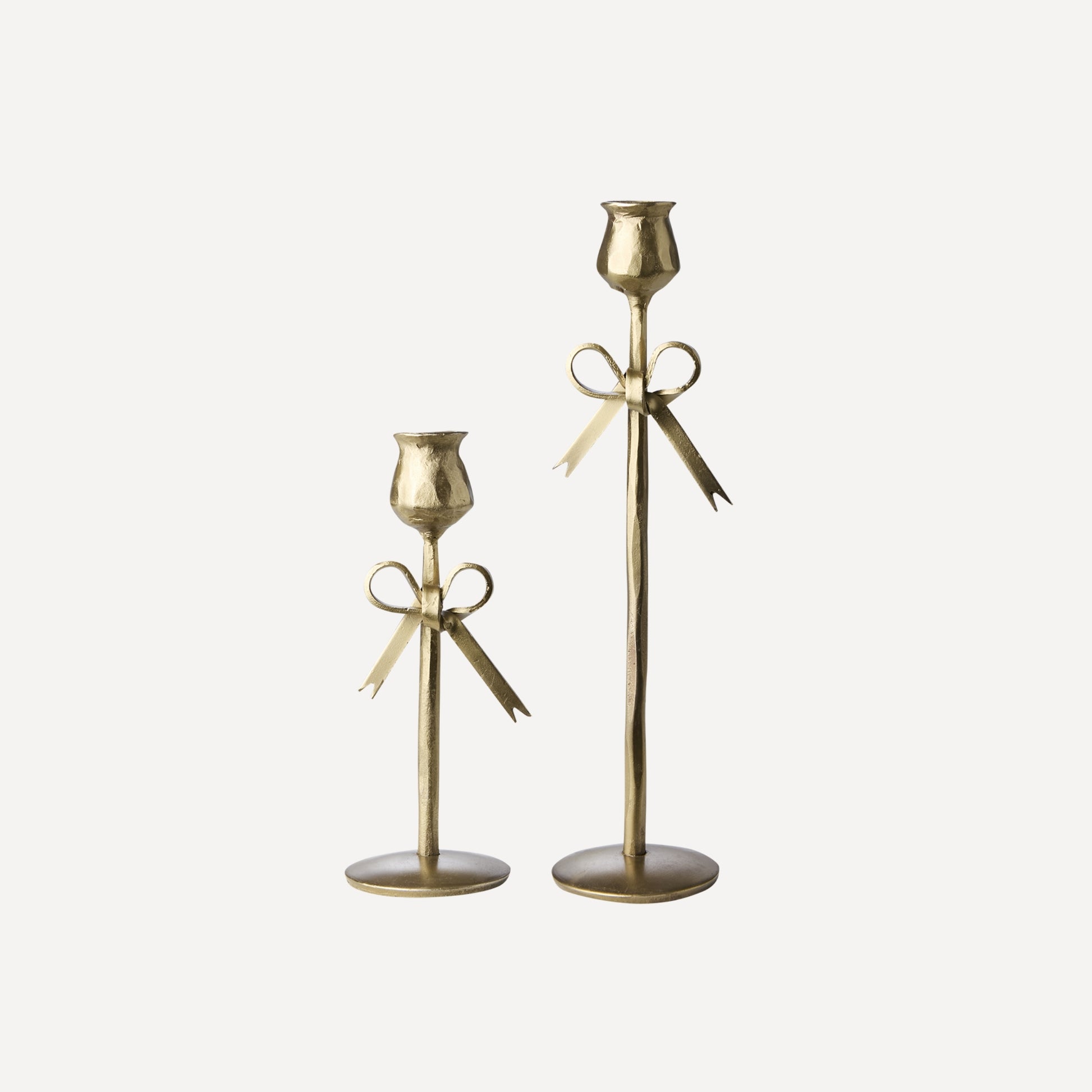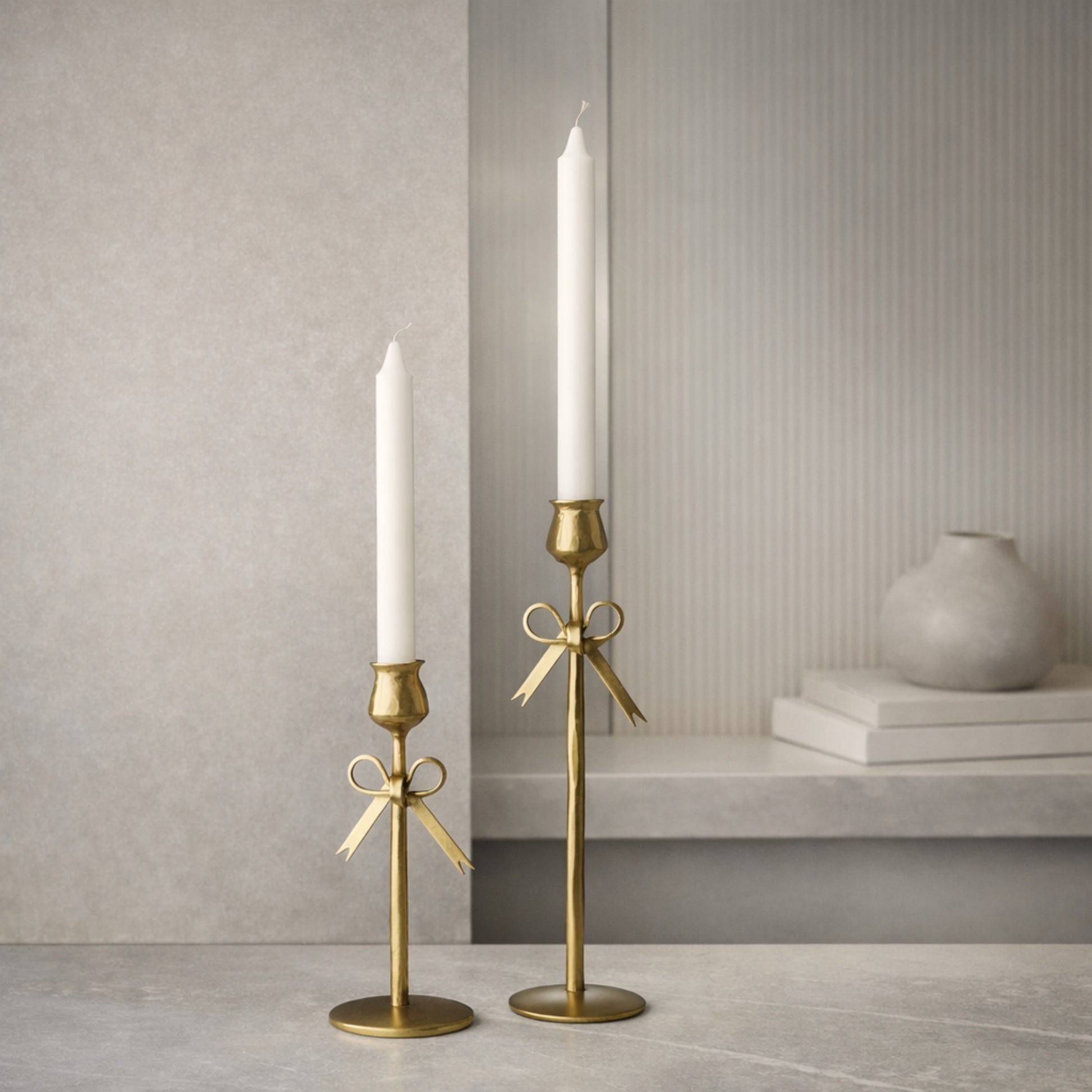 • Två stycken handgjorda ljusstakar med mjuka, harmoniska former som ger rummet ett modernt och balanserat uttryck. Den eleganta metallfinishen reflekterar ljuset subtilt och skapar en lugn, sofistikerad atmosfär.